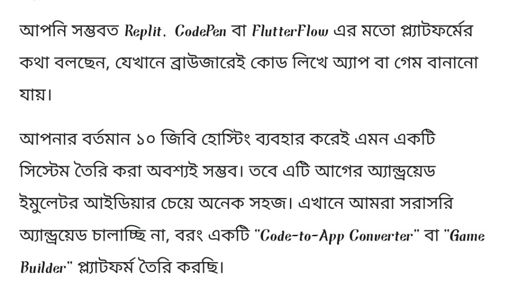 Web Development How To Make App And Game Development Platform With WordPress! আপনি সম্ভবত **Replit**, **CodePen** বা **FlutterFlow** এর মতো প্ল্যাটফর্মের কথা বলছেন, যেখানে ব্রাউজারেই কোড লিখে অ্যাপ...